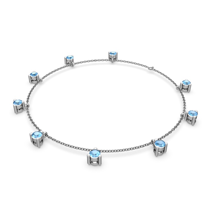 Akuamarin 8 ayar beyaz altın bilezik (40 cm gümüş rolo zincir)