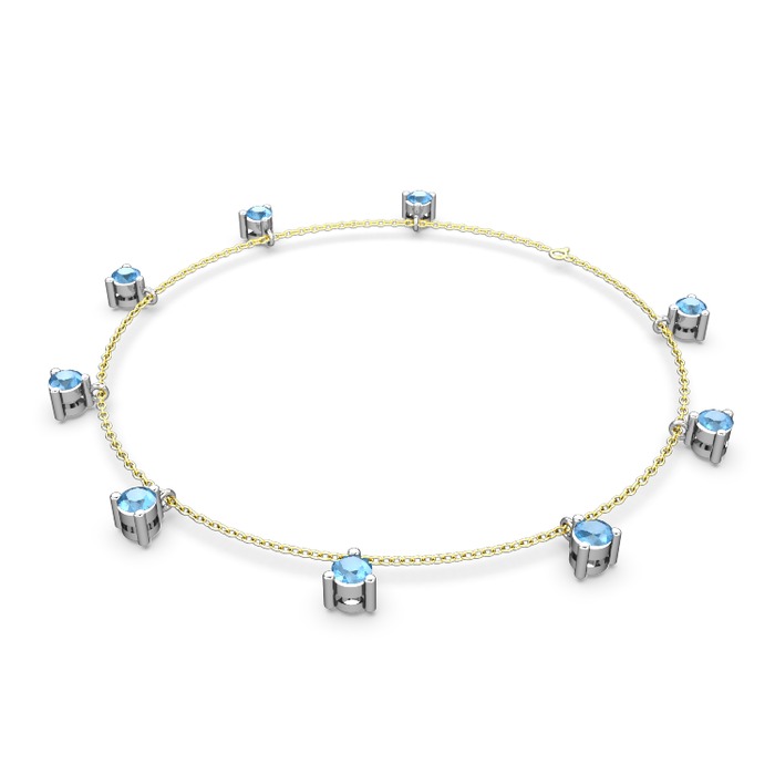 Akuamarin 925 ayar gümüş bilezik (40 cm altın rolo zincir)