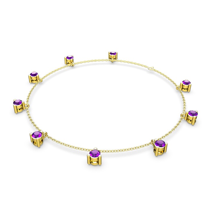 Ametist 8 ayar altın bilezik (40 cm gümüş rolo zincir)