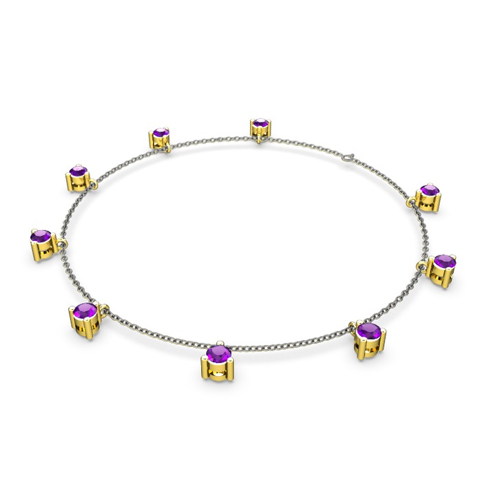 Ametist 8 ayar altın bilezik (40 cm gümüş rolo zincir)