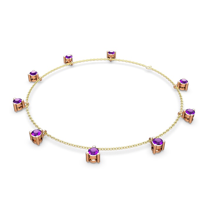 Ametist 8 ayar rose altın bilezik (40 cm altın rolo zincir)