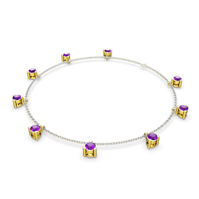 Ametist 925 ayar altın kaplama gümüş bilezik (40 cm gümüş rolo zincir)