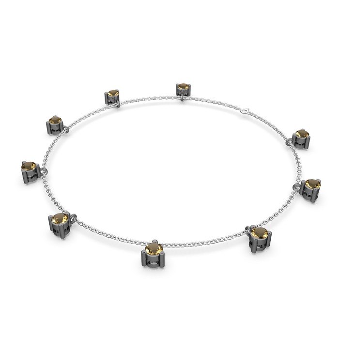 Dumanlı kuvars 925 ayar siyah rodyum kaplama gümüş bilezik (40 cm beyaz altın rolo zincir)