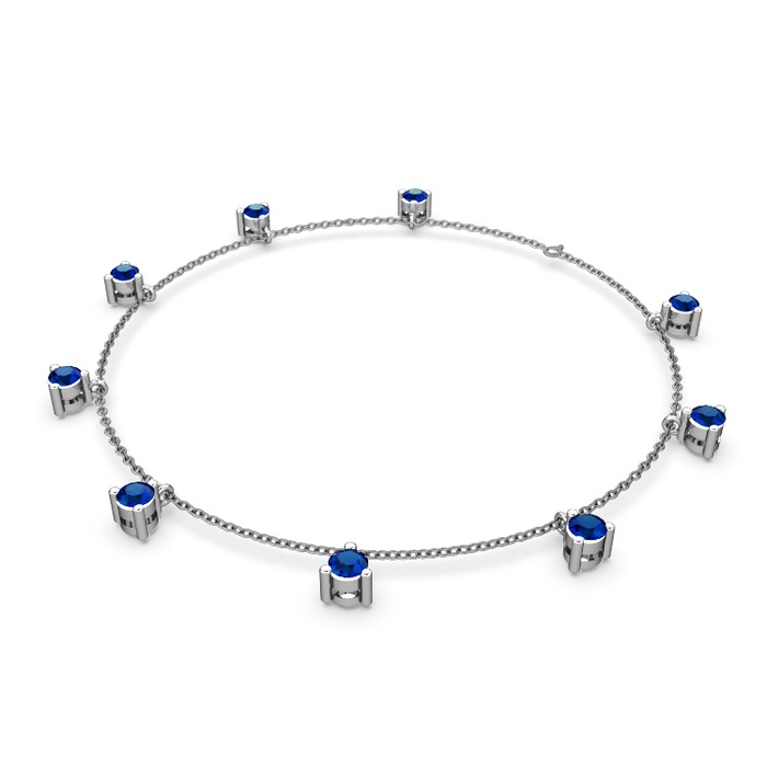 Lab safir 14 ayar beyaz altın bilezik (40 cm gümüş rolo zincir)
