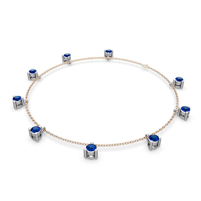 Lab safir 14 ayar beyaz altın bilezik (40 cm gümüş rolo zincir)