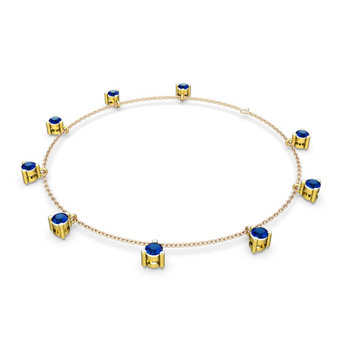 Lab safir 925 ayar altın kaplama gümüş bilezik (40 cm rose altın rolo zincir)
