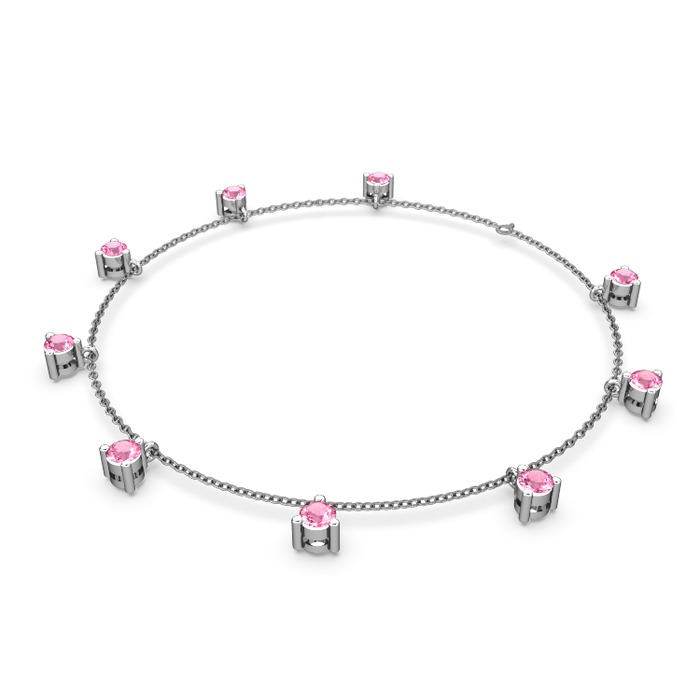 Pembe kuvars 14 ayar beyaz altın bilezik (40 cm gümüş rolo zincir)