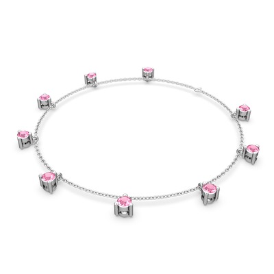 Pembe kuvars 925 ayar gümüş bilezik (40 cm beyaz altın rolo zincir)