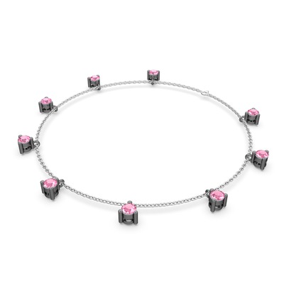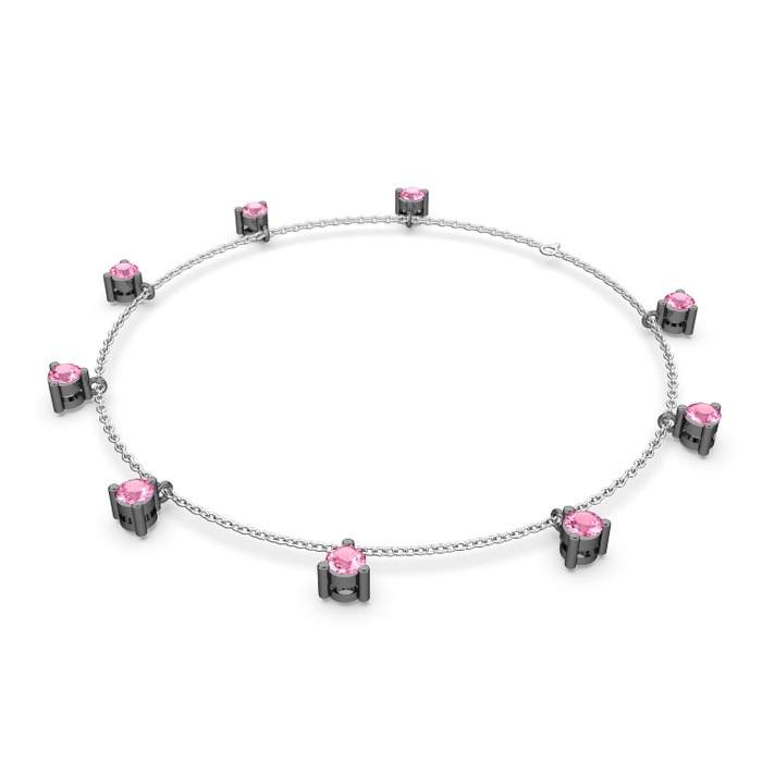 Pembe kuvars 925 ayar siyah rodyum kaplama gümüş bilezik (40 cm beyaz altın rolo zincir)