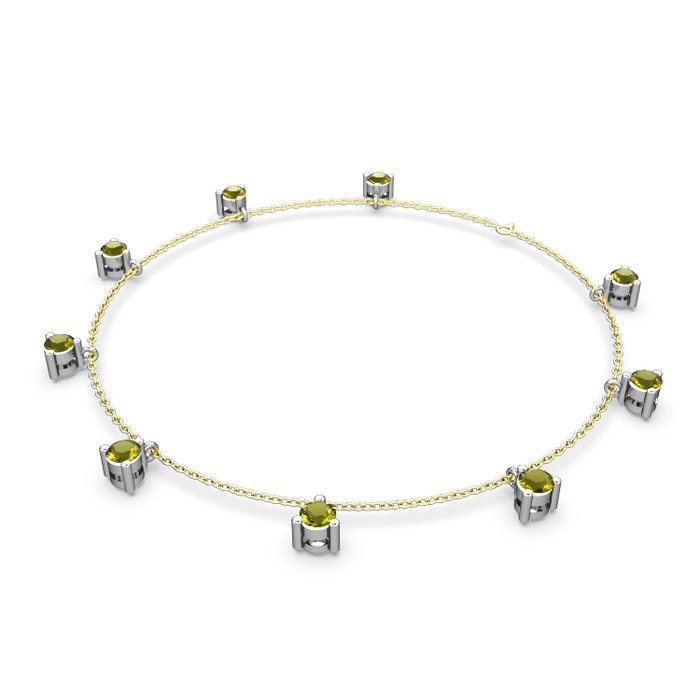 Peridot 18 ayar beyaz altın bilezik (40 cm altın rolo zincir)