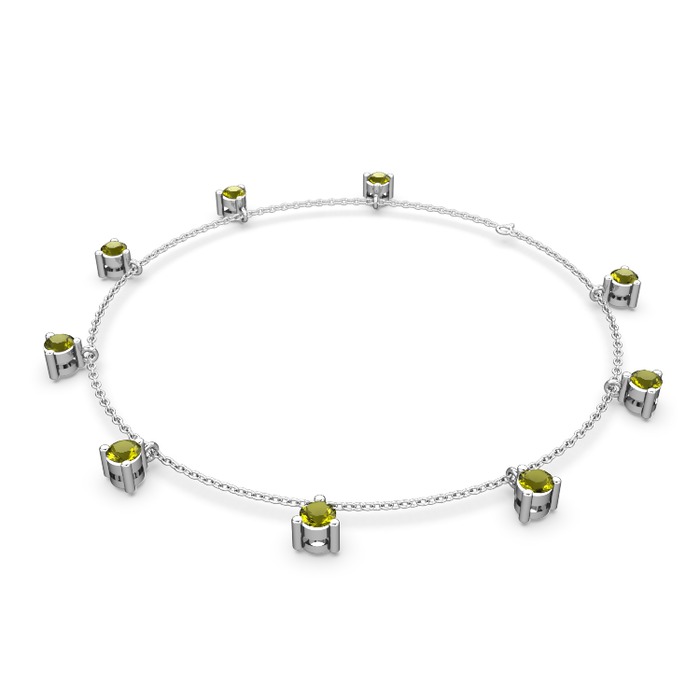 Peridot 18 ayar beyaz altın bilezik (40 cm gümüş rolo zincir)