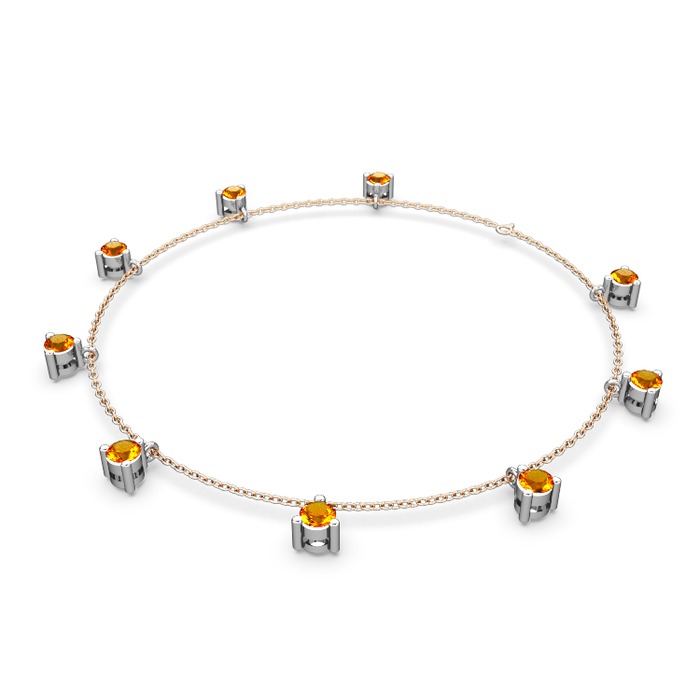 Sitrin 8 ayar beyaz altın bilezik (40 cm rose altın rolo zincir)