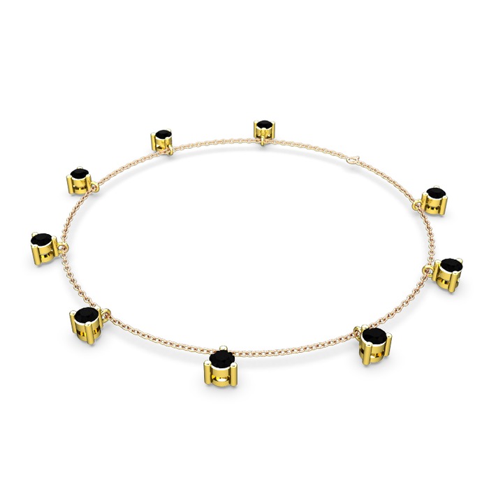 Siyah zirkon 14 ayar altın bilezik (40 cm rose altın rolo zincir)