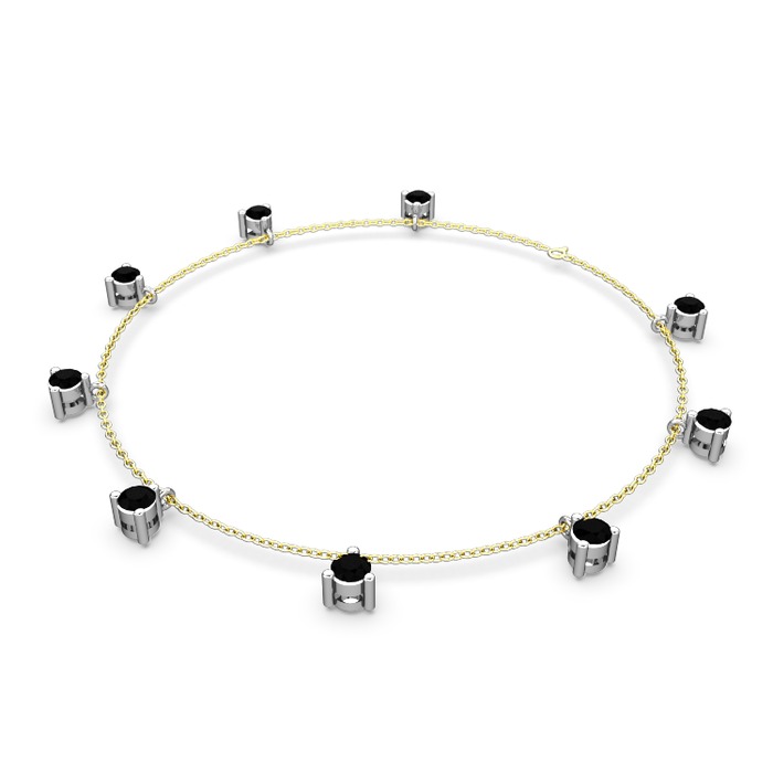 Siyah zirkon 925 ayar gümüş bilezik (40 cm altın rolo zincir)