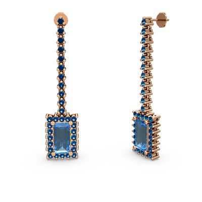 Akuamarin ve lab safir 8 ayar rose altın küpe