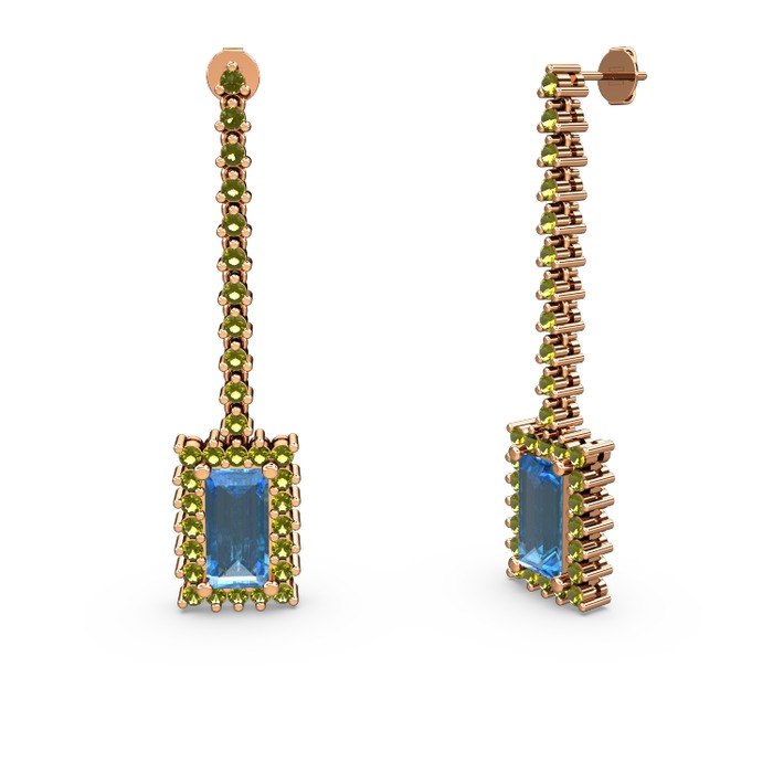 Akuamarin ve peridot 14 ayar rose altın küpe