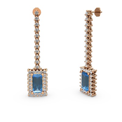 Akuamarin ve pırlanta 14 ayar rose altın küpe (1.24 karat)