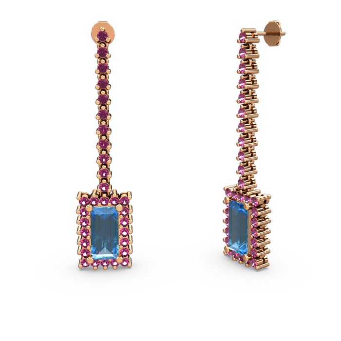 Akuamarin ve rodolit garnet 14 ayar rose altın küpe