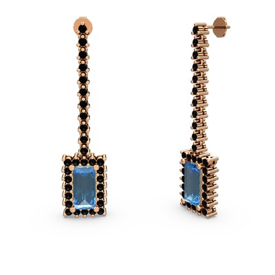 Akuamarin ve siyah zirkon 18 ayar rose altın küpe