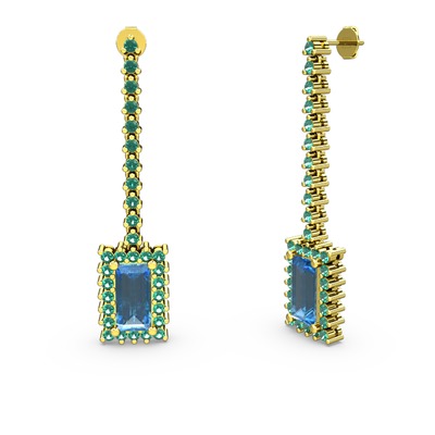 Akuamarin ve yeşil kuvars 14 ayar altın küpe