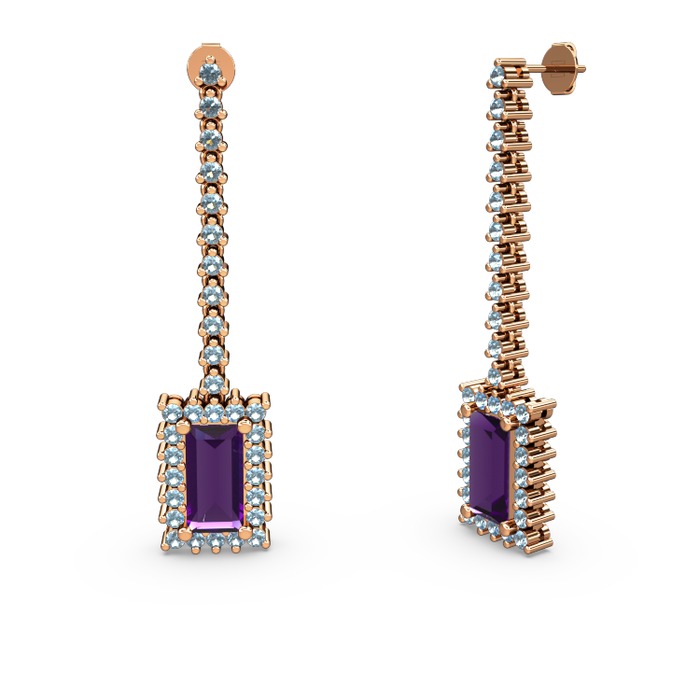 Ametist ve akuamarin 8 ayar rose altın küpe