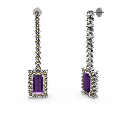 Ametist ve dumanlı kuvars 8 ayar beyaz altın küpe