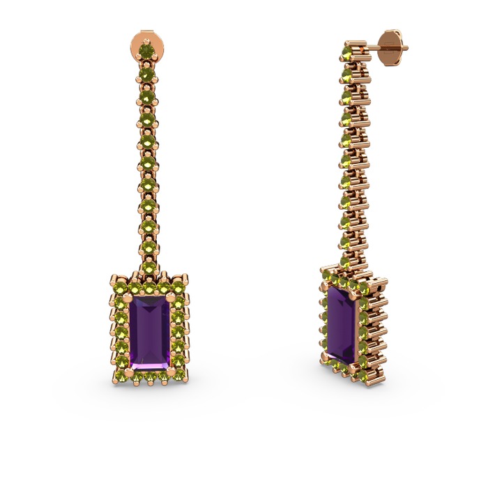 Ametist ve peridot 14 ayar rose altın küpe