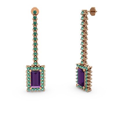 Ametist ve yeşil kuvars 925 ayar rose altın kaplama gümüş küpe