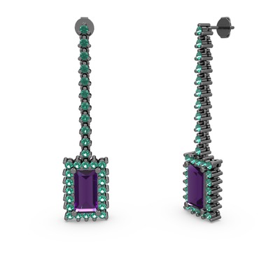 Ametist ve yeşil kuvars 925 ayar siyah rodyum kaplama gümüş küpe