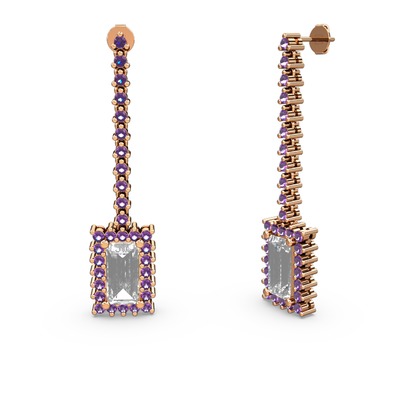 Beyaz zirkon ve ametist 18 ayar rose altın küpe