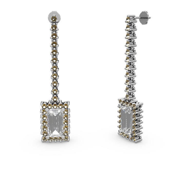 Beyaz zirkon ve dumanlı kuvars 18 ayar beyaz altın küpe