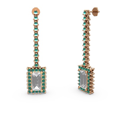 Beyaz zirkon ve kök zümrüt 8 ayar rose altın küpe