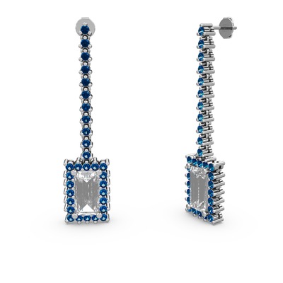 Beyaz zirkon ve lab safir 18 ayar beyaz altın küpe