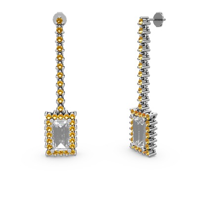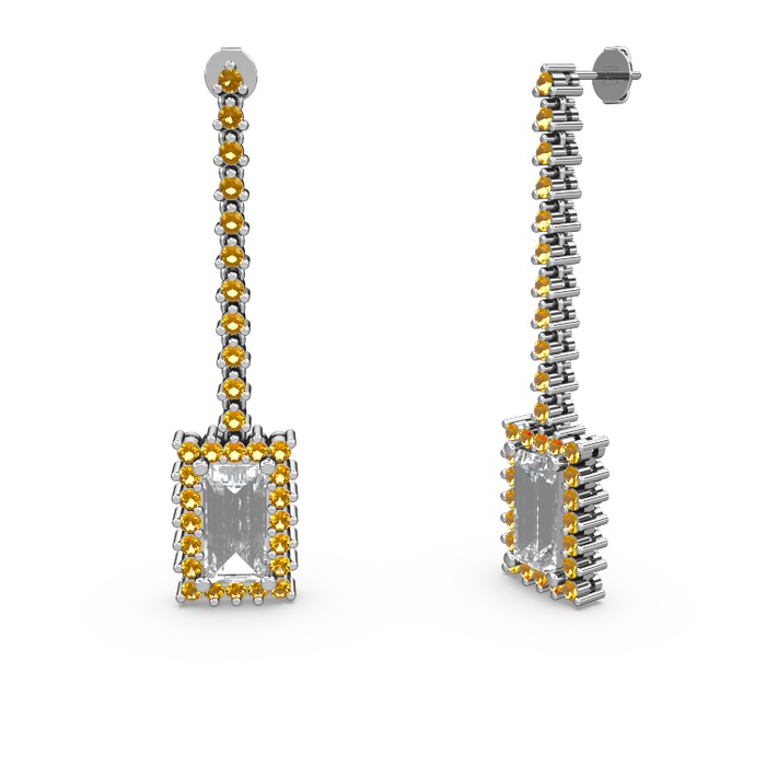 Beyaz zirkon ve sitrin 18 ayar beyaz altın küpe