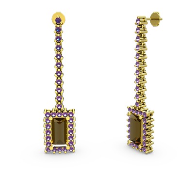 Dumanlı kuvars ve ametist 925 ayar altın kaplama gümüş küpe