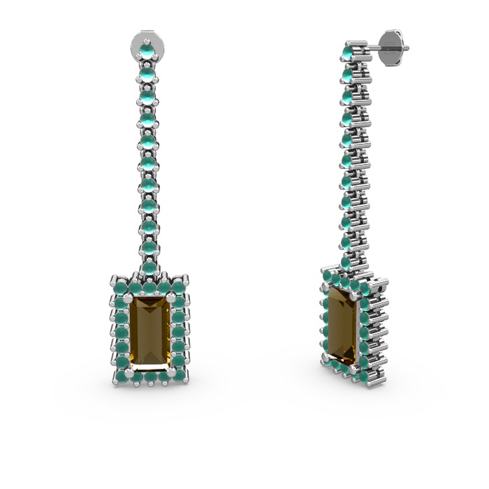 Dumanlı kuvars ve kök zümrüt 14 ayar beyaz altın küpe
