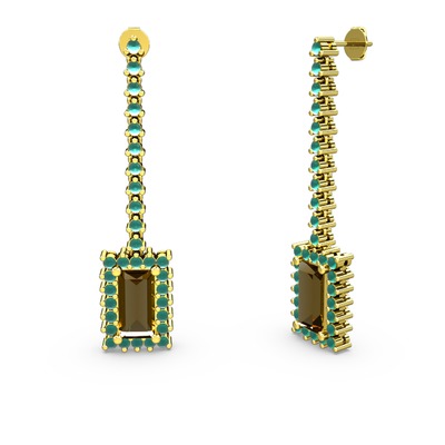 Dumanlı kuvars ve kök zümrüt 18 ayar altın küpe