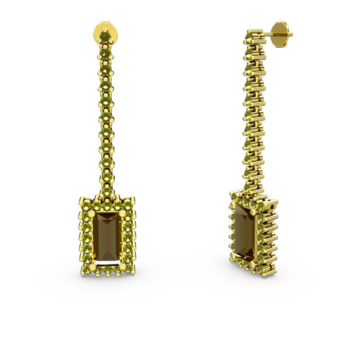 Dumanlı kuvars ve peridot 14 ayar altın küpe