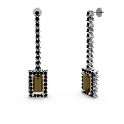 Dumanlı kuvars ve siyah zirkon 8 ayar beyaz altın küpe