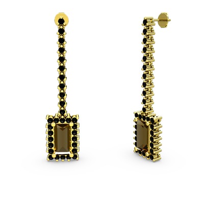 Dumanlı kuvars ve siyah zirkon 925 ayar altın kaplama gümüş küpe
