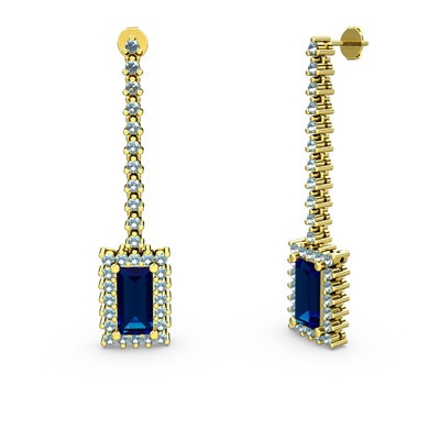 Lab safir ve akuamarin 925 ayar altın kaplama gümüş küpe