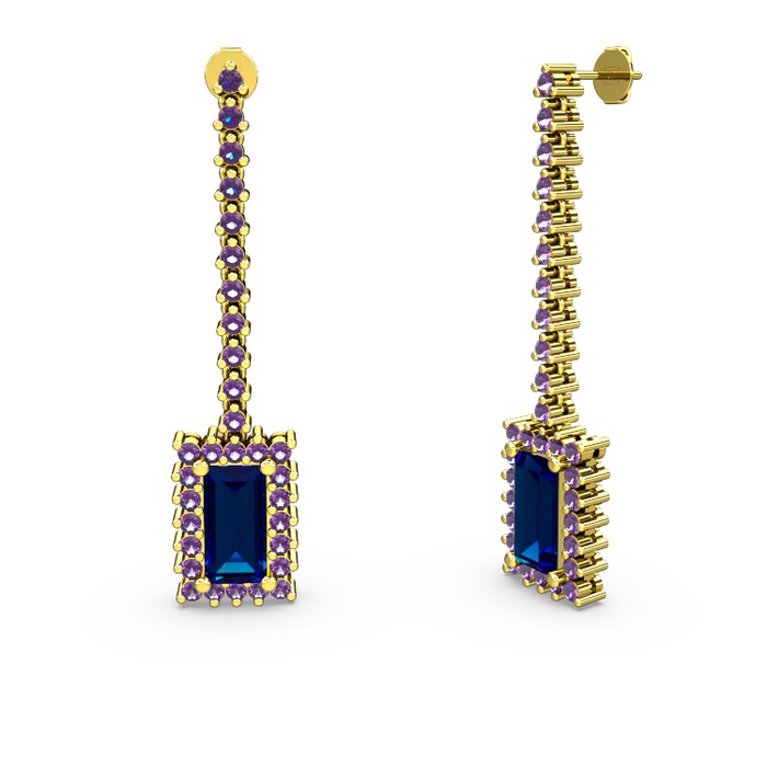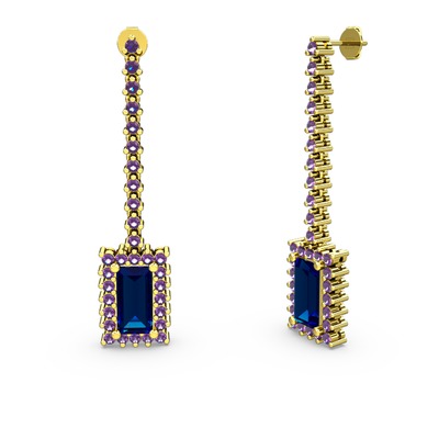 Lab safir ve ametist 8 ayar altın küpe