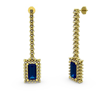 Lab safir ve dumanlı kuvars 18 ayar altın küpe