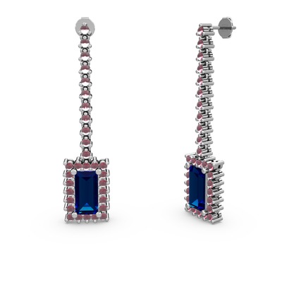 Lab safir ve kök yakut 14 ayar beyaz altın küpe