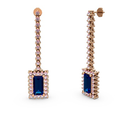 Lab safir ve pembe kuvars 18 ayar rose altın küpe