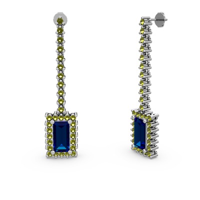 Lab safir ve peridot 8 ayar beyaz altın küpe