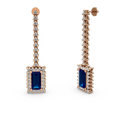 Lab safir ve pırlanta 14 ayar rose altın küpe (1.24 karat)