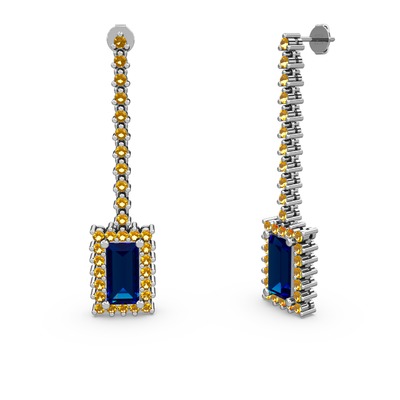 Lab safir ve sitrin 14 ayar beyaz altın küpe