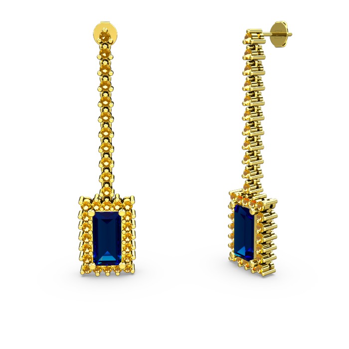 Lab safir ve sitrin 925 ayar altın kaplama gümüş küpe