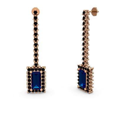 Lab safir ve siyah zirkon 8 ayar rose altın küpe